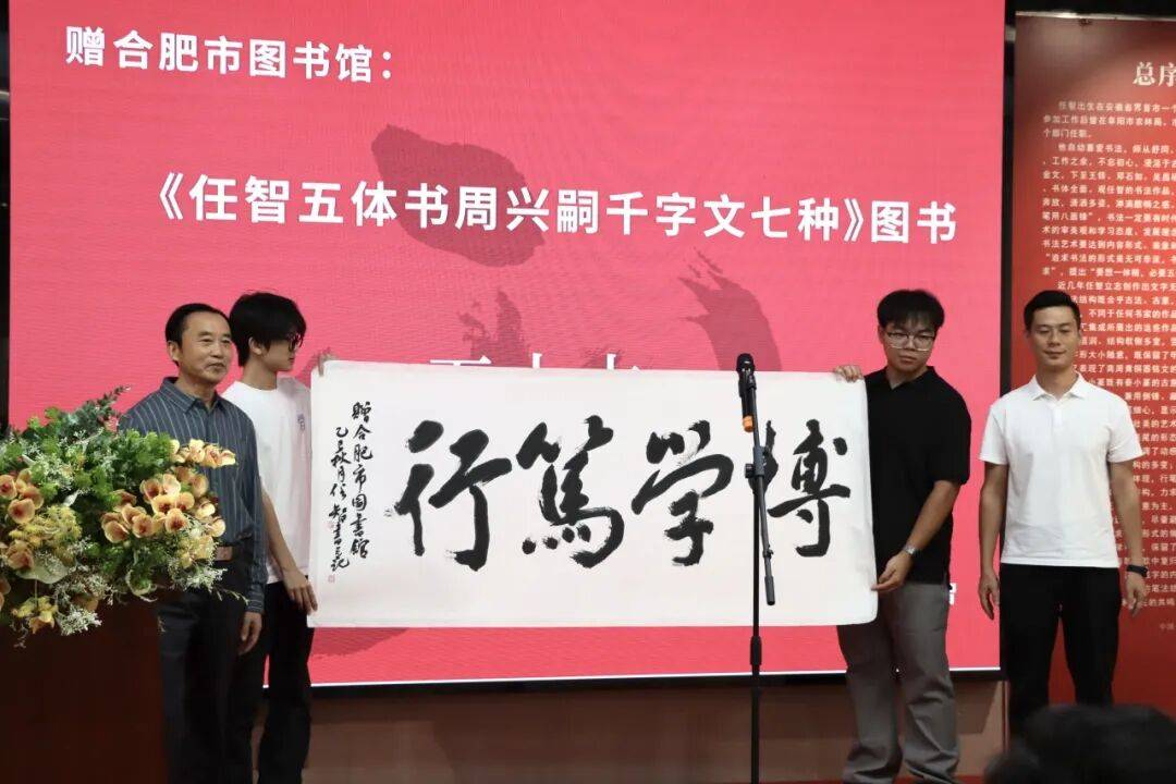 本次展览任智先生分别向安徽省图书馆、合肥市图书馆捐赠五十本“任智五体书周兴嗣‘千字文’七种”图书及书法作品各一幅,并向迅达·墨缘艺术馆捐赠书法作品一幅。